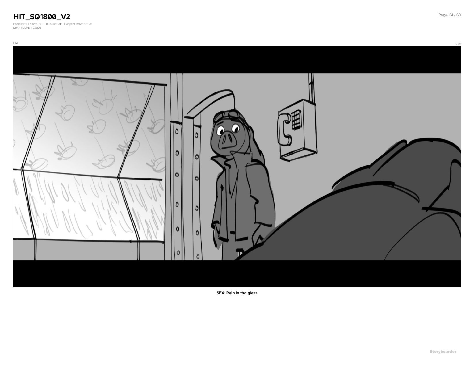 Aspect Ratio: 37 : 20 DRAFT: JUNE 11, 2020 Page: 61 / 68 61A 2:00 SFX: Rain in the glass