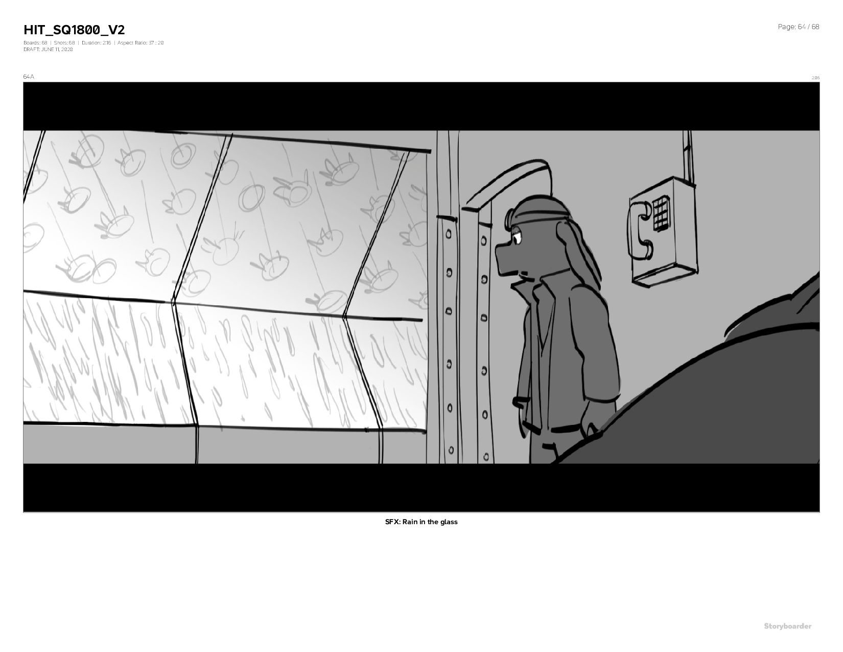 Aspect Ratio: 37 : 20 DRAFT: JUNE 11, 2020 Page: 64 / 68 64A 2:06 SFX: Rain in the glass