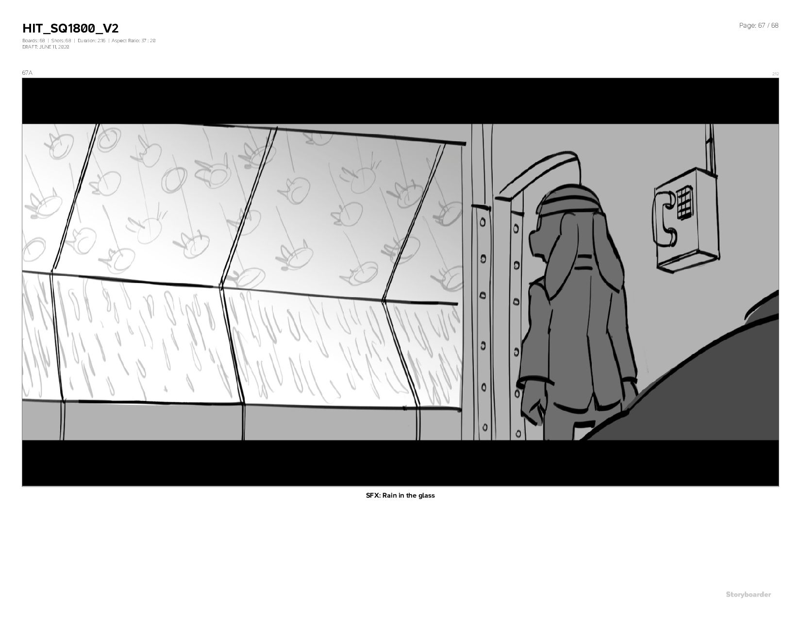 Aspect Ratio: 37 : 20 DRAFT: JUNE 11, 2020 Page: 68 / 68 68A 2:14 SFX: Rain in the glass