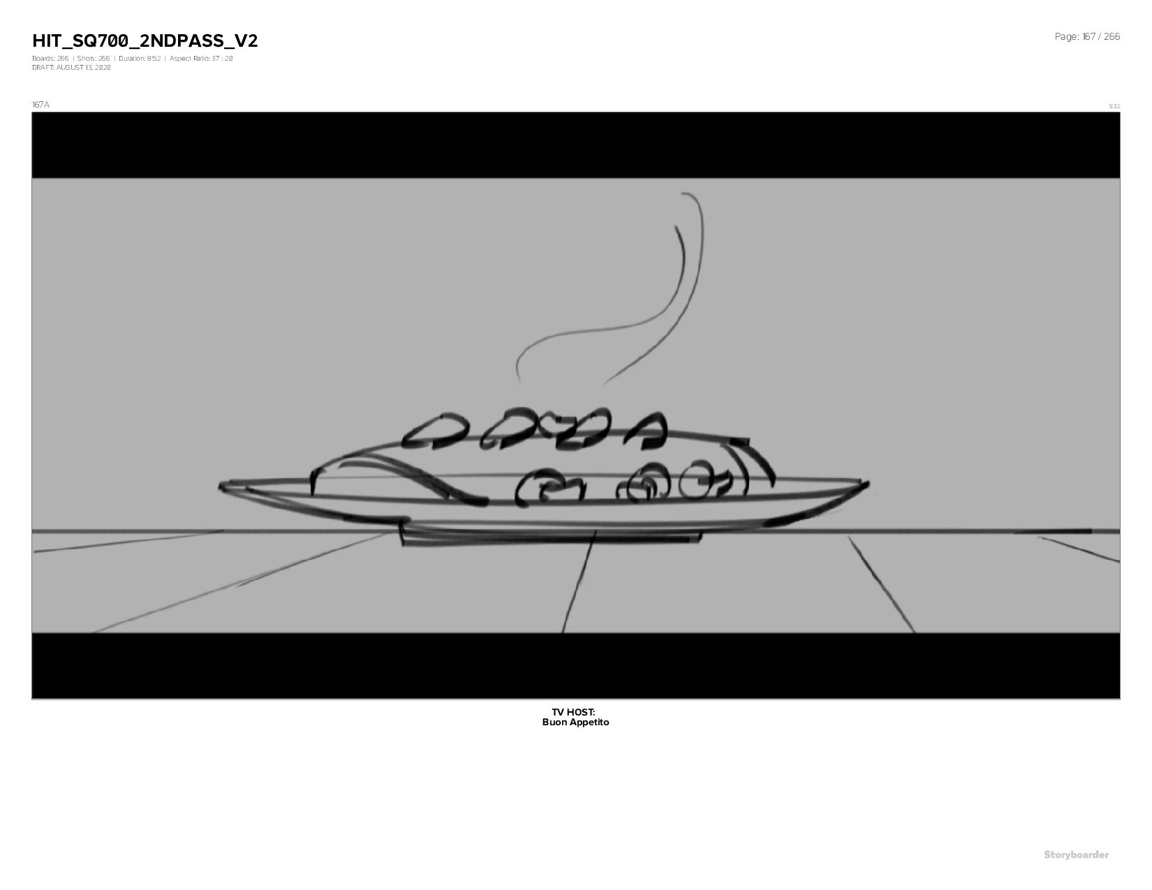Aspect Ratio: 37 : 20 DRAFT: AUGUST 13, 2020 Page: 167 / 266 167A 5:32 TV HOST: Buon Appetito