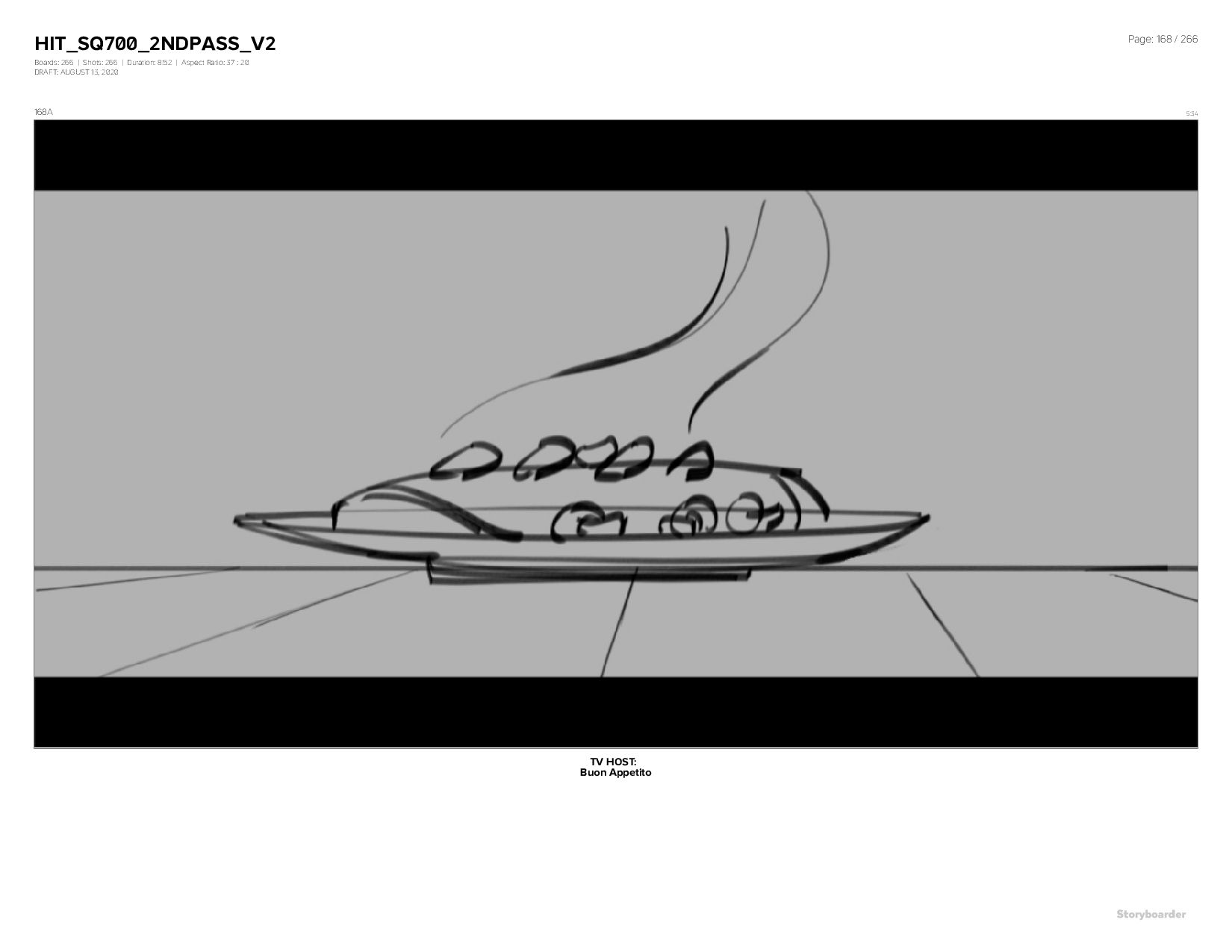 Aspect Ratio: 37 : 20 DRAFT: AUGUST 13, 2020 Page: 168 / 266 168A 5:34 TV HOST: Buon Appetito