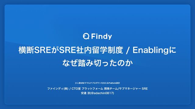ԣஅ43&͕43&ࣾཹ੍ֶ&OBCMJOHʹ ͳͥ౿Έͬͨͷ͔ গਓSREͰϚϧνϓϩμΫτΛࢧ͑ΔPlatformઃܭ ϑΝΠϯσΟ ג $50ࣨϓϥοτϑΥʔϜ։ൃνʔϜαϒϚωʔδϟʔ43& ҆ୡྋ !BEBDIJO