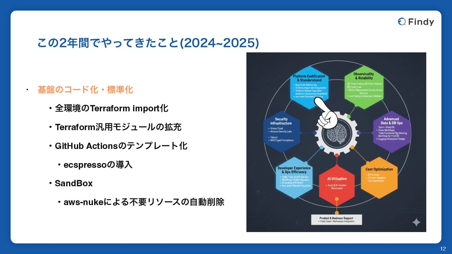 ͜ͷؒͰ͖ͬͯͨ͜ͱ d 12 ɾ ج൫ͷίʔυԽɾඪ४Խ ɹɾશڥͷTerraform importԽ ɹɾTerraform൚༻Ϟδϡʔϧͷ֦ॆ ɹɾGitHub ActionsͷςϯϓϨʔτԽ