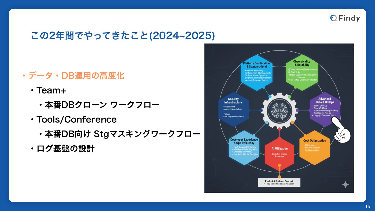 ͜ͷؒͰ͖ͬͯͨ͜ͱ d 15 ɾσʔλɾ%#ӡ༻ͷߴԽ ɹɾ5FBN ɹɹɾຊ൪%#ΫϩʔϯϫʔΫϑϩʔ ɹɾ5PPMT$POGFSFODF ɹɹɾຊ൪%#͚4UHϚεΩϯάϫʔΫϑϩʔ ɹɾϩάج൫ͷઃܭ