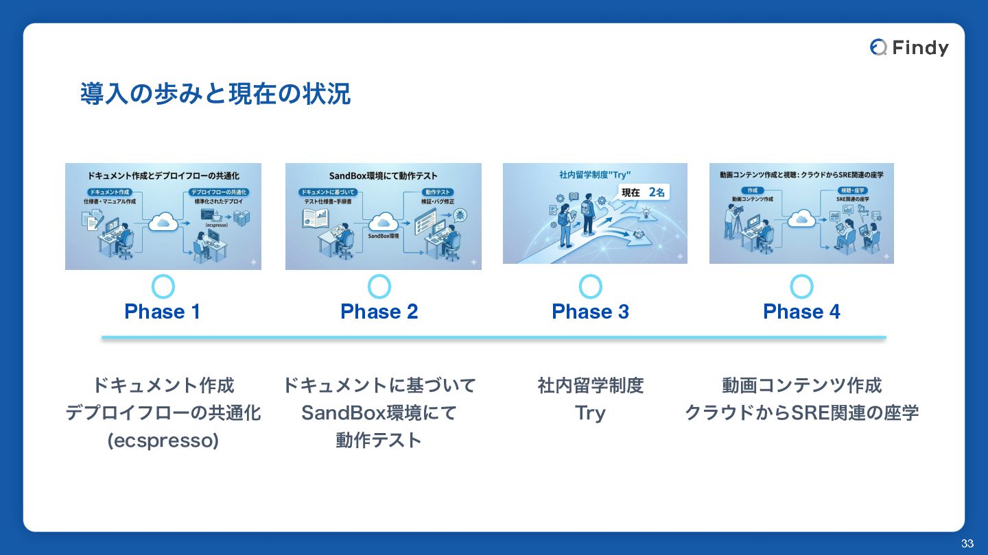 ಋೖͷาΈͱݱࡏͷঢ়گ 33 υΩϡϝϯτ࡞ σϓϩΠϑϩʔͷڞ௨Խ FDTQSFTTP Phase 1 Phase 2