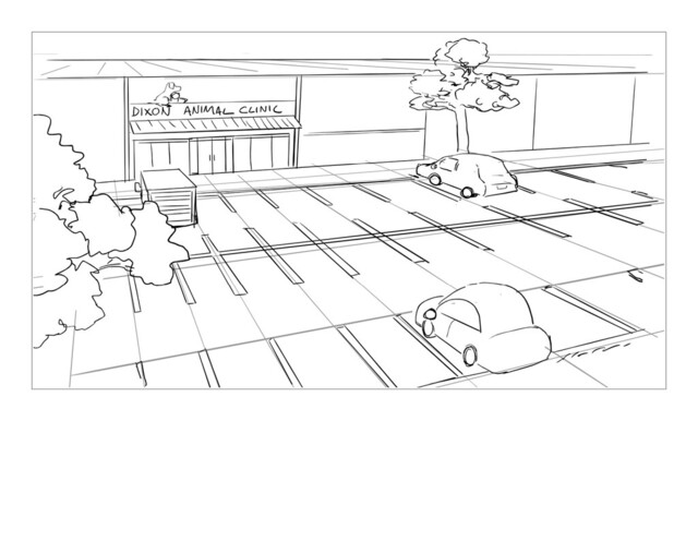 A dramatic storyboard. When her dog gets sick, a woman takes him to the vet but is forced to wait in the car. The appointment stretches on far longer than anticipated.