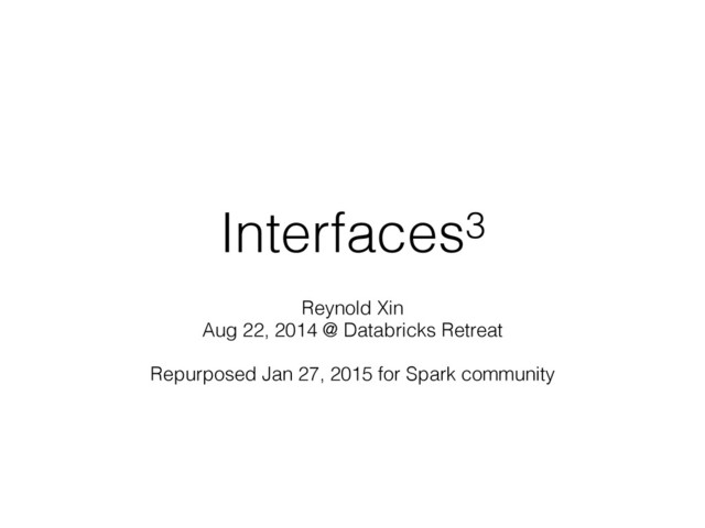Interface design is a vital part of Spark becoming a long-term sustainable, thriving framework. Good interfaces can be the project's biggest asset, while bad interfaces can be the worst technical debt. As the project scales bigger and bigger, the community is expanding and we are getting a wider range of contributors that have not thought about this as their everyday development experience outside Spark.