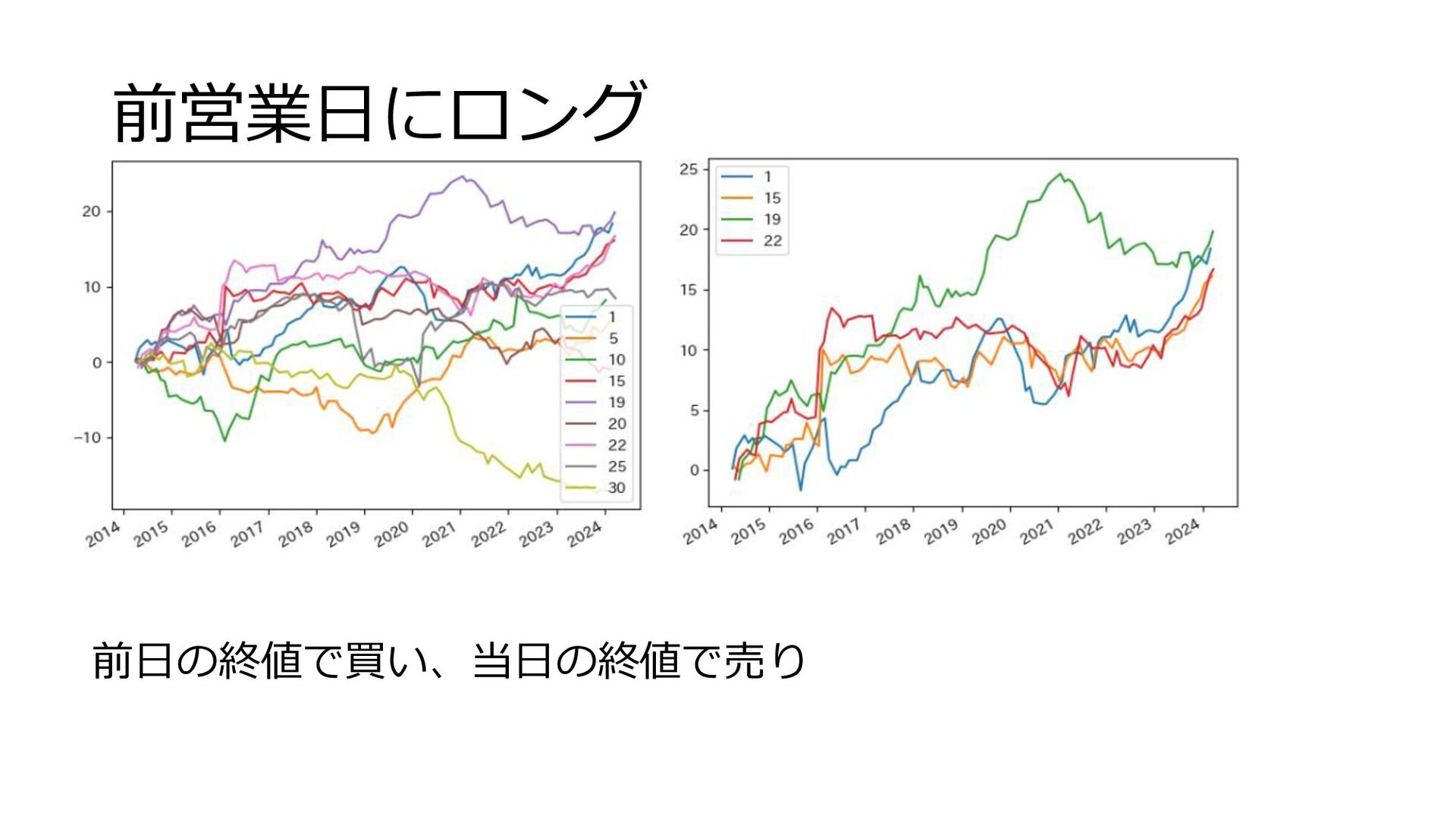 前営業日にロング 前日の終値で買い、当日の終値で売り