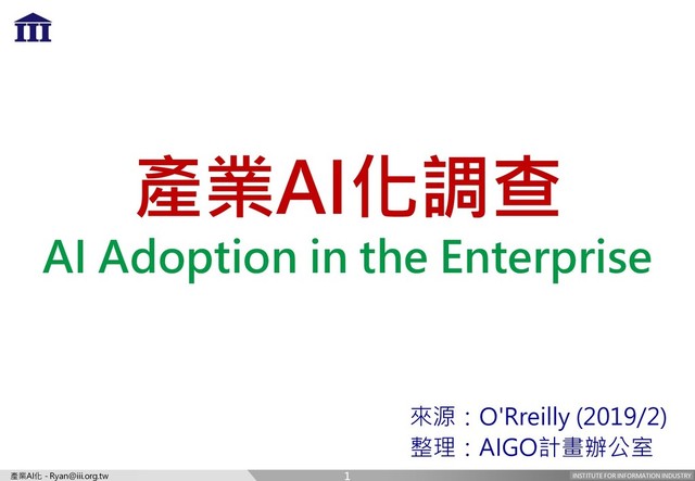 in the Enterprise 來源:O'Rreilly (2019/2) 整理:AIGO計畫辦公室 1