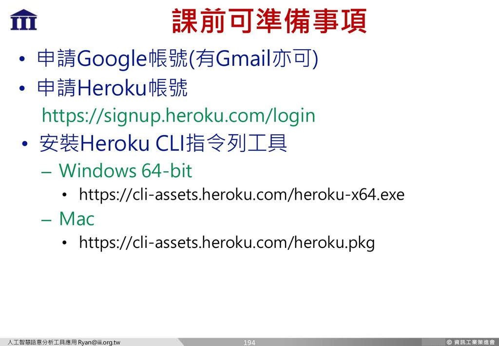 寒暄語 Hello、你好、嗨 喚醒語 Invocation 系統指定啟動語 Alexa, Hi Siri, OK Google 提出需求 台北的天氣如何? 一般人均可直接理解對方的需求 釐清意圖 Intent 透過語句解析,確定對方的意圖是什麼 訓練 釐清意圖 N/A 由於同一意圖有多種表達方式 所以要多提供例句讓機器對應至特定意圖 取得 關鍵資訊 若對方漏說了地方與時間 持續問答取得資訊 取出關鍵資訊 Entity 預先定義好滿足該意圖所需的關鍵資訊 持續與使用者對話取得所有需求關鍵資訊 確認 條件滿足 跟對方確定取得必要資訊後 開始進行查詢 依據關鍵資訊與意圖 進行下一階段資料查詢(API 介接) 回應 回應查詢結果 新聞說今天臺北在下雨,氣溫19度 依據查詢結果 以文字、圖形或語音的方式回應 延伸問答 依據目前資訊的延伸問題 那明天的狀況也一樣嗎? 須將既有輸入資訊暫存 更新資料查詢並進行回應 229