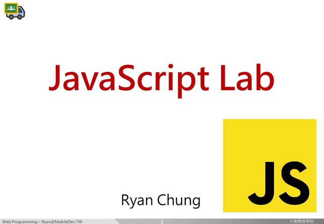JavaScript! – 環境安裝、套件安裝、專案基本構成 • 今天晚上吃什麼 – 亂數選擇器 – HTML/CSS/JS、jQuery、亂數 • 自動排課系統 – 表格、陣列、日期時間、函數、迴圈、字串、樣式 • 心理測驗 – 你的愛情是什麼滋味? – 條件判斷、按鈕、資料取得、陣列、字典 • RPG極簡雛形製作 – Canvas、圖型載入、For..in、事件、Switch • Youtube心情點唱機 – Youtube iFrame API、div、id、物件 • 網頁整合 – Bootstrap、超連結、選單、jQuery選擇器 • 網站上線 – GitHub Pages、Git 2
