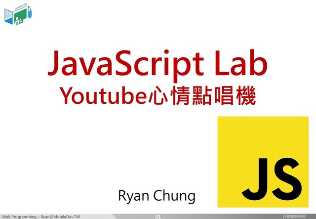 行動開發學院 行動開發學院 JavaScript Lab Youtube心情點唱機 Ryan
