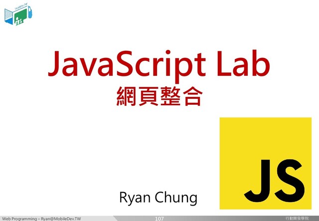 行動開發學院 行動開發學院 JavaScript Lab 網頁整合 Ryan