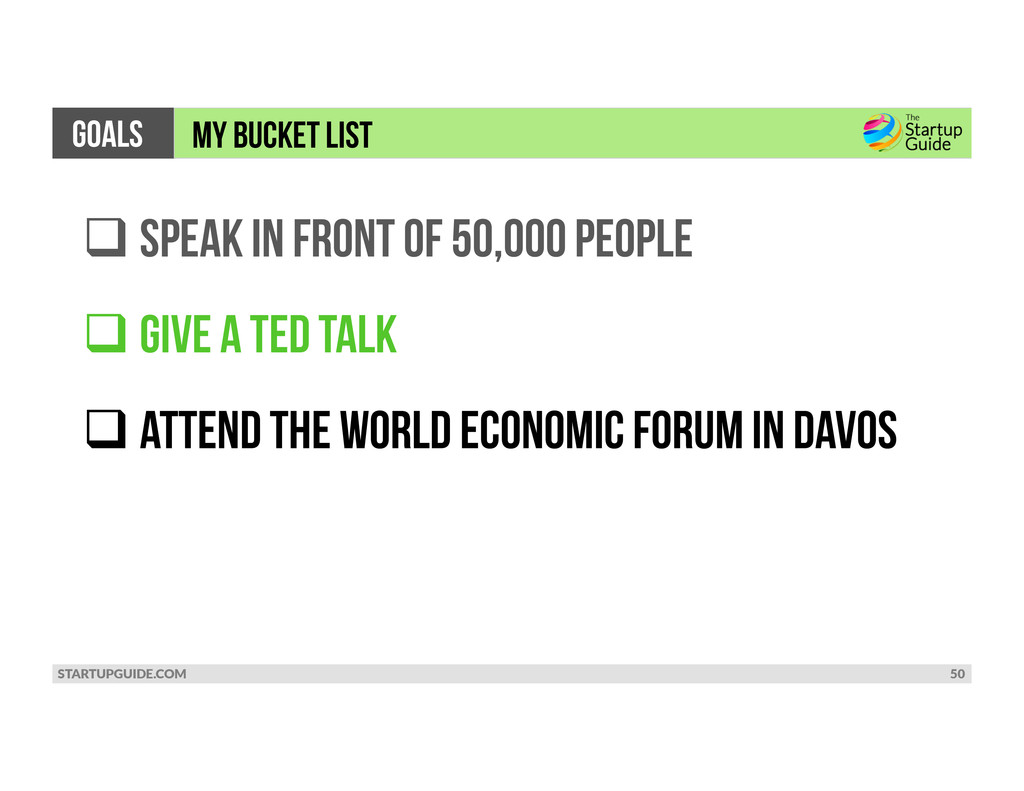 THAN $1 Billion in SALES ! CREATE OVER 1 million jobs during my lifetime ! SPEND 6 STRAIGHT MONTHS TRAVELING THE WORLD ! Visit 100 countries by age 50 GOALS MY BUCKET LIST