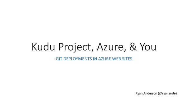 the source files are, which is normally the root of the repo • DEPLOYMENT_TARGET: the target of the deployment. Typically, this is the wwwroot folder • DEPLOYMENT_TEMP: a temporary folder that can be used to store artifacts for the current build. This folder is deleted after the cmd is run. • MSBUILD_PATH: Path to msbuild executable. THE KUDU PROJECT