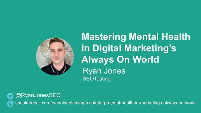 Jones SEOTesting speakerdeck.com/ryanatseotesting/mastering-mental-health-in-marketings-always-on-world @RyanJonesSEO