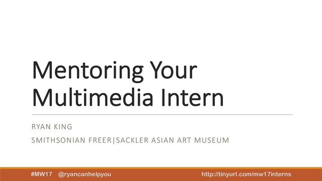 Interns are a wonderful source of help and insight within our institutions. If we are lucky, we can offer them paid positions, but more often than not, they are unpaid. Beyond being a line item on their resumé, how can we nurture and mentor our interns to ensure they have meaningful experiences during their time at our organizations? Building character, modeling professionalism, and inspiring a love of cultural work should be goals for our impact on each intern. We discuss how we attempt to maximize interns’ exposure to a variety of museum career paths while also working on their technical expertise through video editing projects. Share stories of engaging projects and fun ways to recognize intern success during our seven minutes of lightning glory.