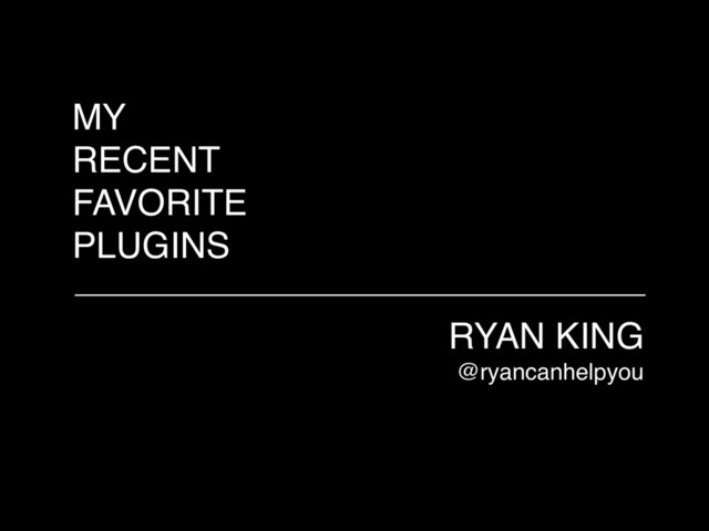 MY RECENT FAVORITE PLUGINS RYAN KING @ryancanhelpyou