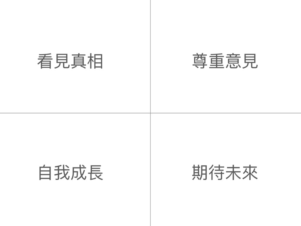 看⾒見見真相 尊重意⾒見見 ⾃自我成長 期待未來來