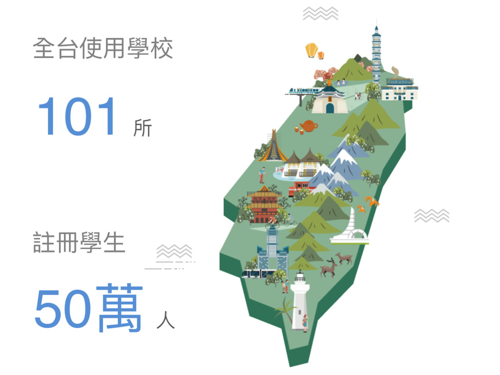 全台使⽤用學校 101 所 註冊學⽣生 50萬 ⼈人