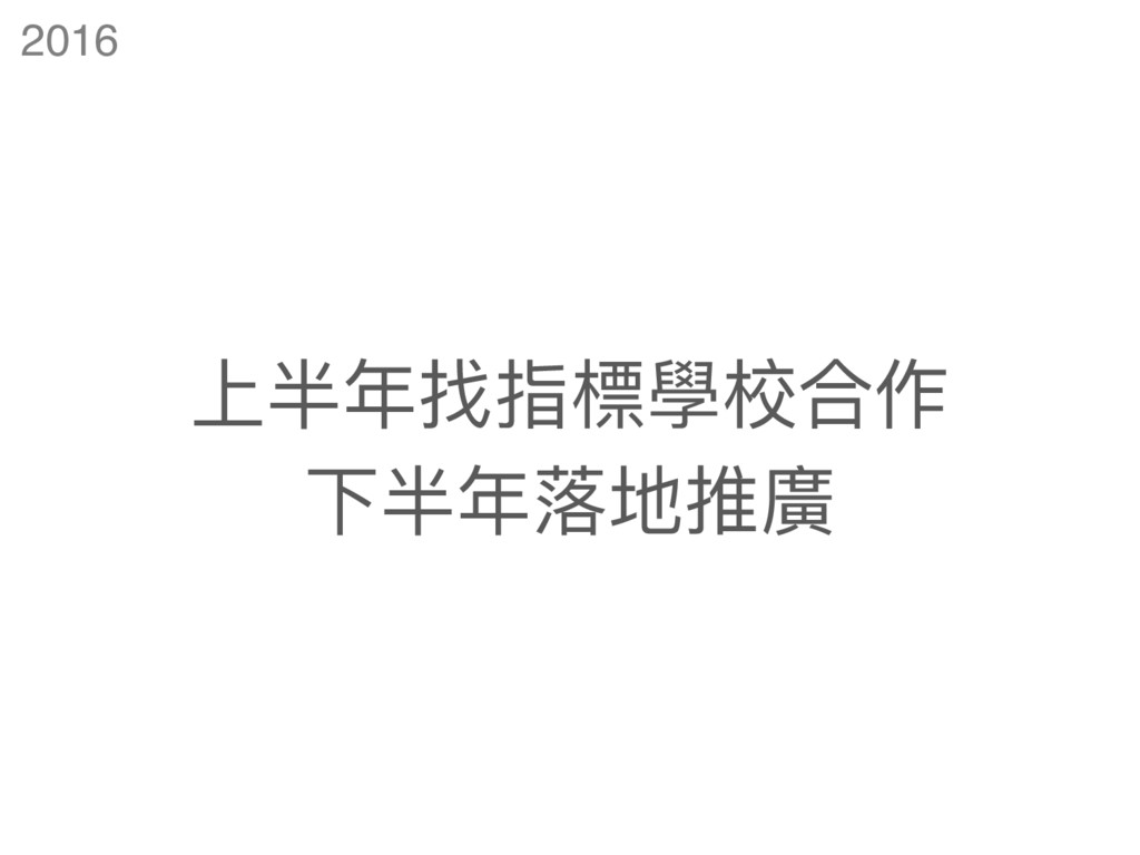 上半年年找指標學校合作 下半年年落落地推廣 2016