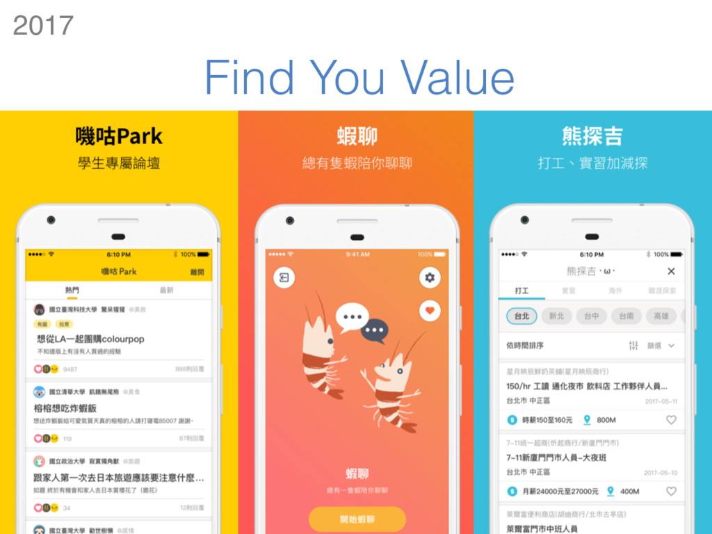 募資成功 開發新服務:學⽣生應⽤用 2017