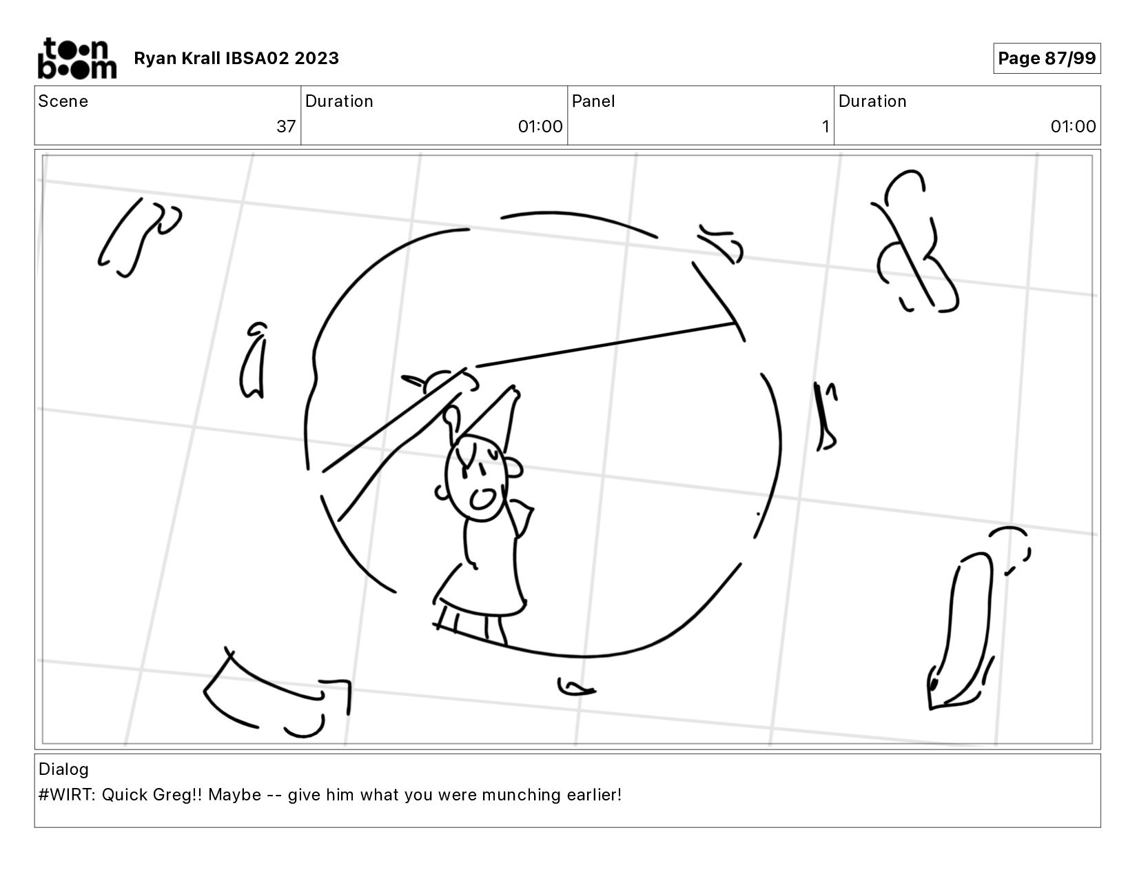 Dialog #WIRT: Quick Greg!! Maybe -- give him what you were munching earlier! Ryan Krall IBSA02 2023 Page 87/99