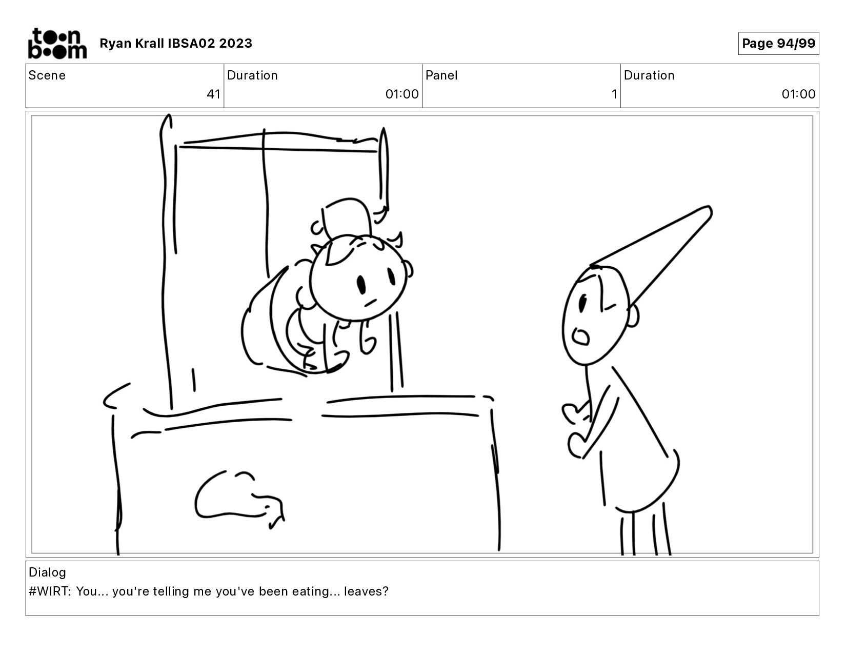 Dialog #WIRT: You... you're telling me you've been eating... leaves? Ryan Krall IBSA02 2023 Page 94/99