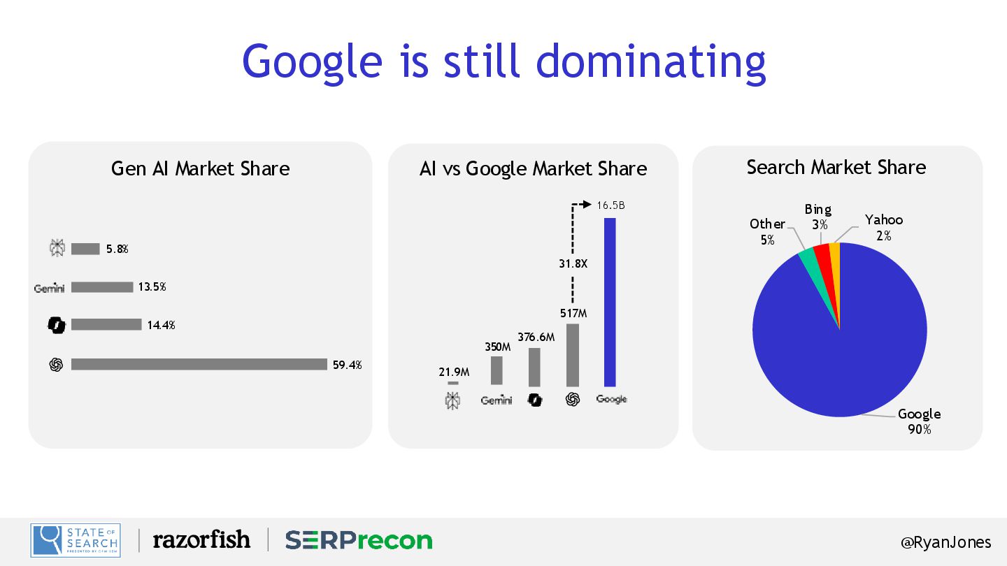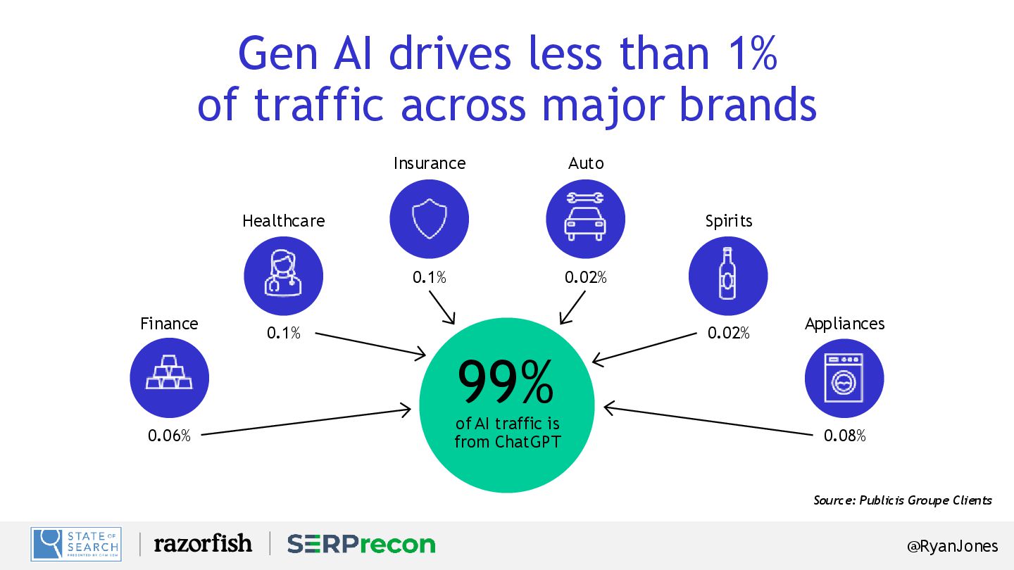 major brands Source: Publicis Groupe Clients 0.08% 0.1% 0.06% 0.1% 0.02% Appliances Insurance Finance Healthcare Spirits 99% of AI traffic is from ChatGPT 0.02% Auto