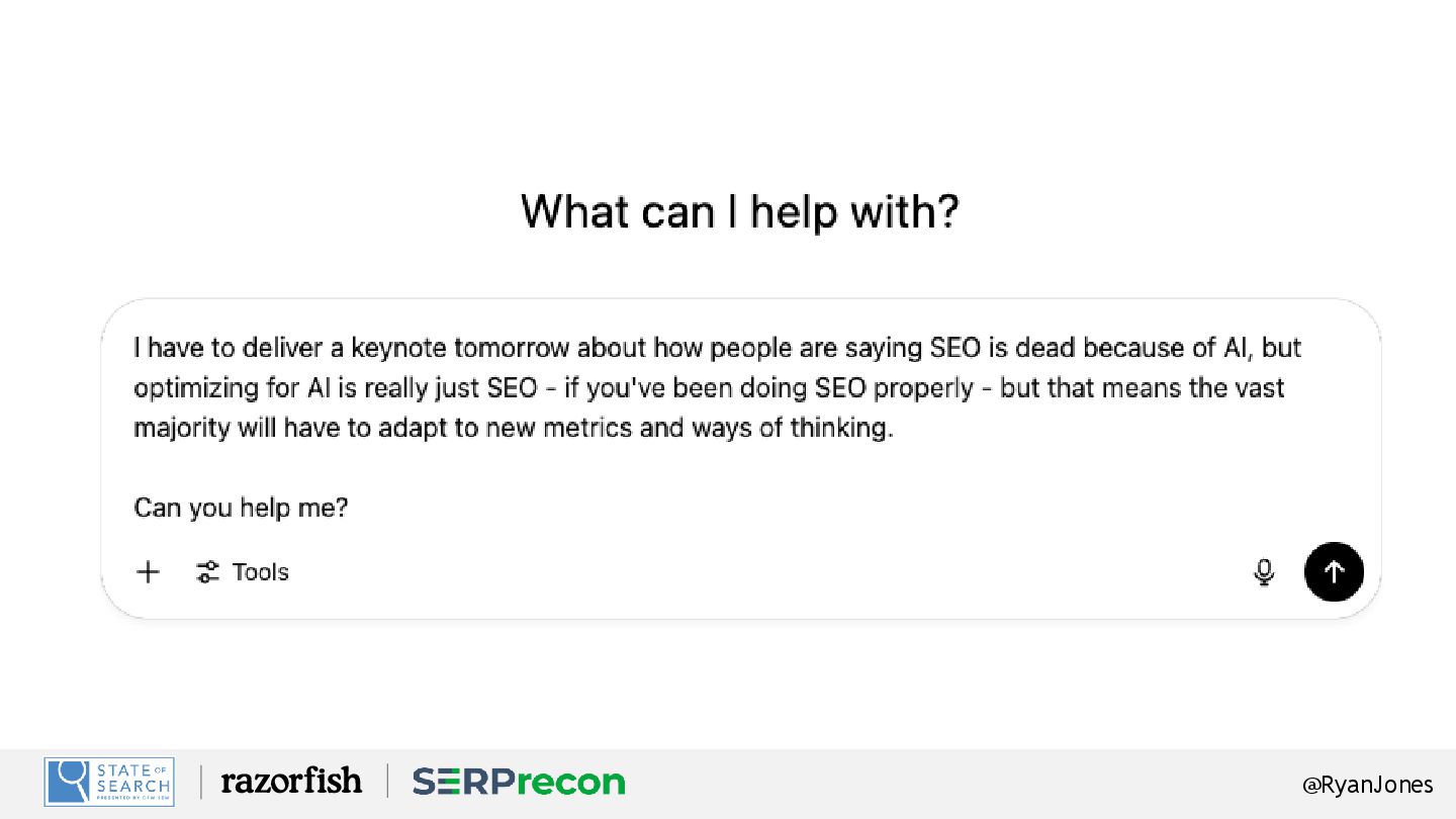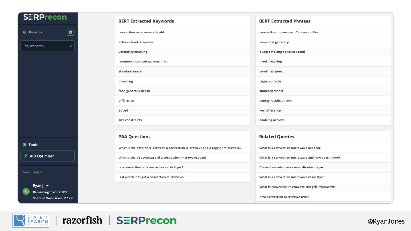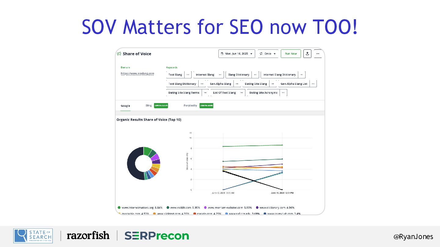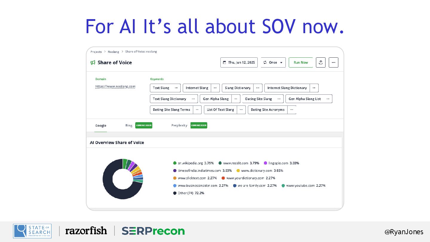 Retrieval Features: AI Share of voice, GEO Optimization, Real metrics! Sign up: SERPrecon.com (everyone gets a free trial!) Coupon Code: SOS25. (25% off FOR LIFE!) Swag? Stickers – come see me