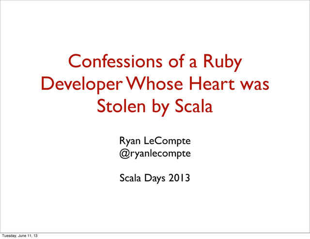 6)) List(Vector(1, 1), Vector(3, 3), Vector(4), Vector(2, 2), Vector(5),Vector(6)) @tailrec def groupRuns[A](c: Seq[A], acc: Seq[Seq[A]] = Seq.empty): Seq[Seq[A]] = { c match { case Seq() => acc case xs => val (same, rest) = xs.span { _ == xs.head } groupRuns(rest, acc :+ same) } } Tuesday, June 11, 13