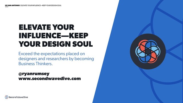 ELEVATE YOUR INFLUENCE—KEEP YOUR DESIGN SOUL Exceed the expectations placed on designers and researchers by becoming Business Thinkers. @ryanrumsey www.secondwavedive.com