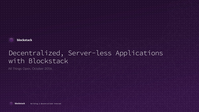 Blockstack is a platform for decentralized, server-less applications. Building on Blockstack starts with single-page applications built in Javascript that are downloaded onto user devices. Developers plug into blockstack.js, which provides API’s for authenticating the user, grabbing application data from the user, and storing new application data with the user (encrypted and backed up to cloud storage). The blockchain is utilized to maintain a cross-application identity system, securely mapping user IDs to usernames, public keys, and data storage URIs. Developers don’t have to worry about running servers, maintaining databases, or building out user management systems, and decentralized, server-less applications can be built more simply than their traditional counterparts.