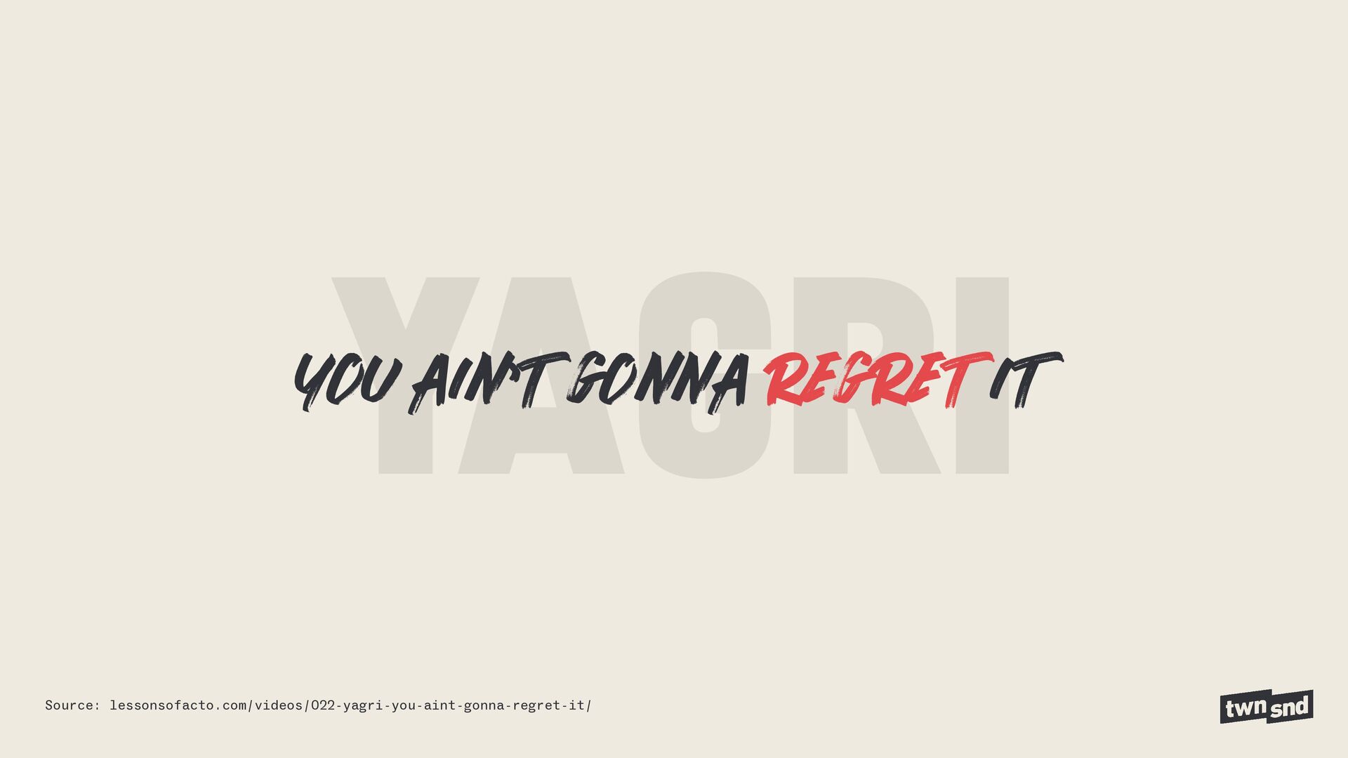 * Slide 26: https://lessonsofacto.com/videos/022-yagri-you-aint-gonna-regret-it/