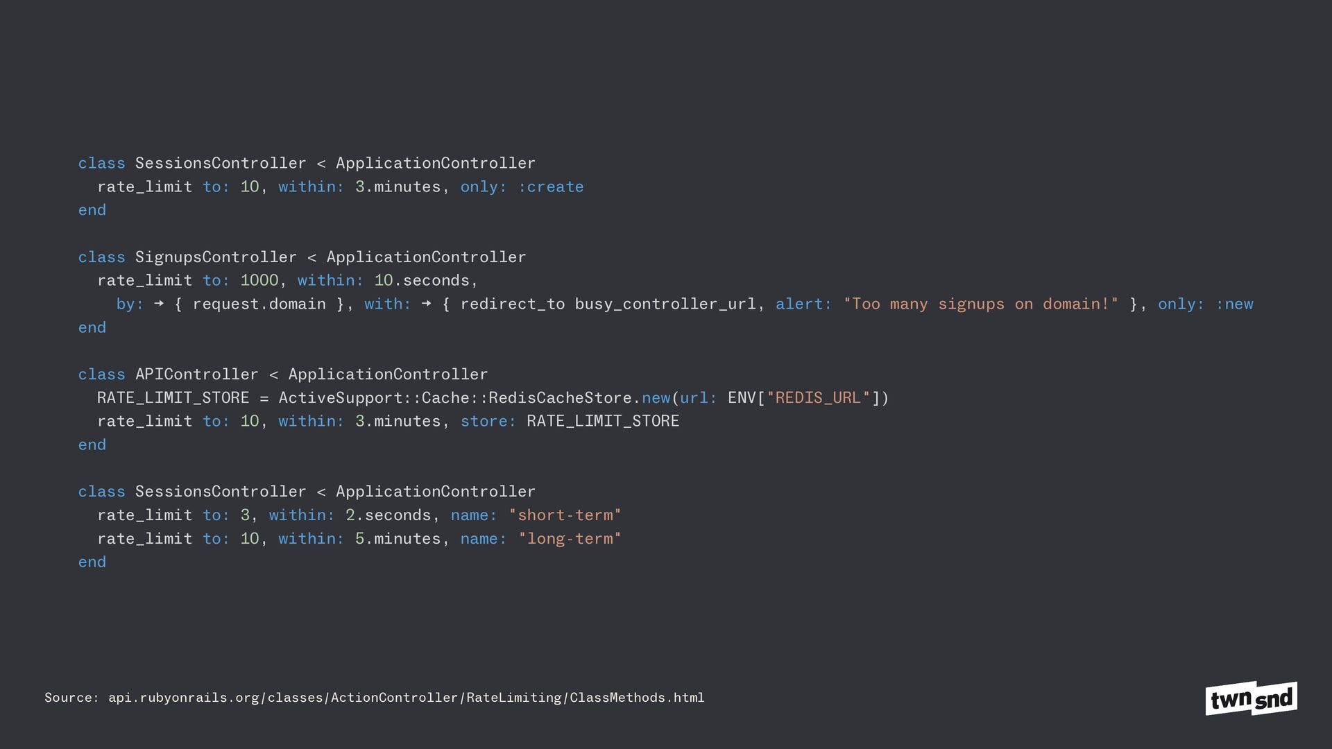 * Slide 41: https://api.rubyonrails.org/classes/ActionController/RateLimiting/ClassMethods.html