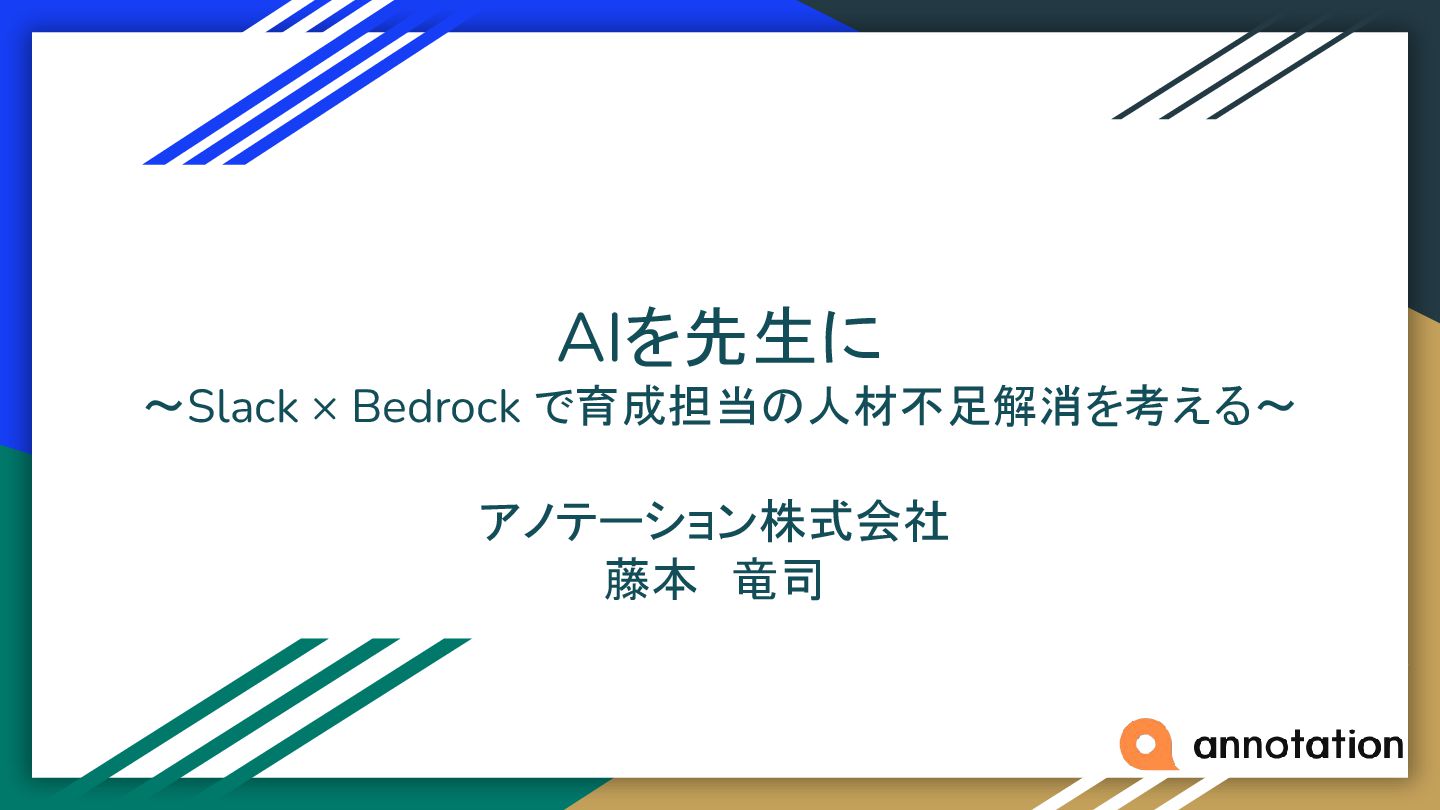 AIを先生に ~Slack × Bedrock で育成担当の人材不足解消を考える~ アノテーション株式会社 藤本 竜司