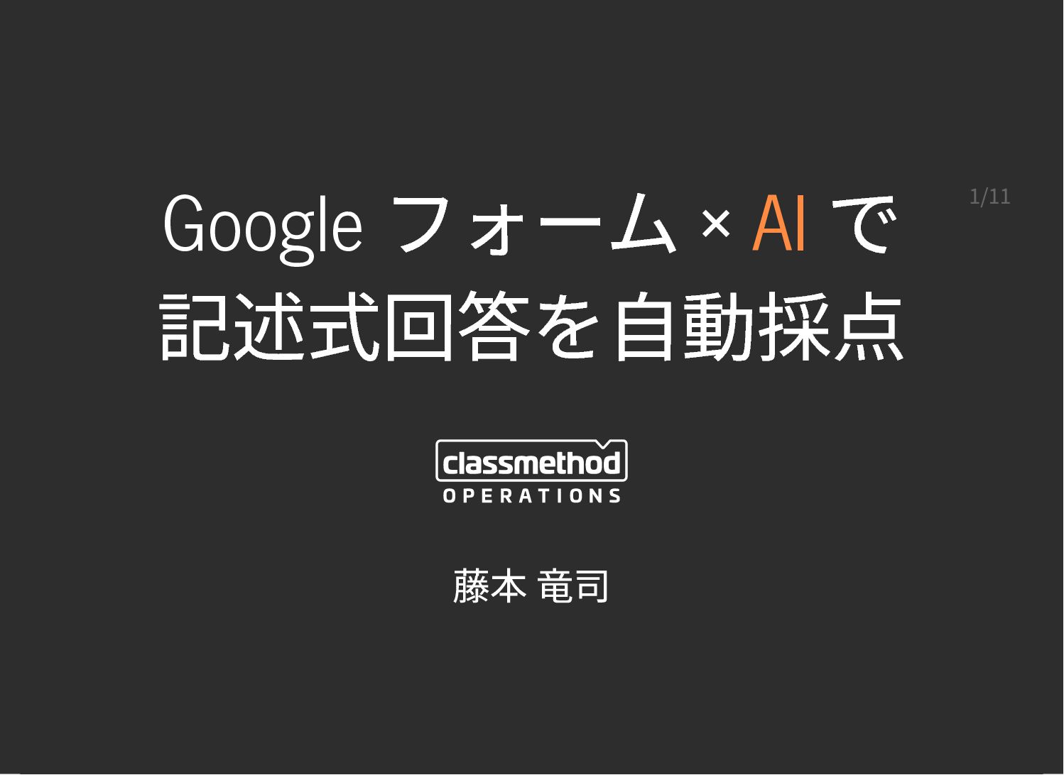 Google フォーム × AI で 記述式回答を自動採点 藤本 竜司 1/11