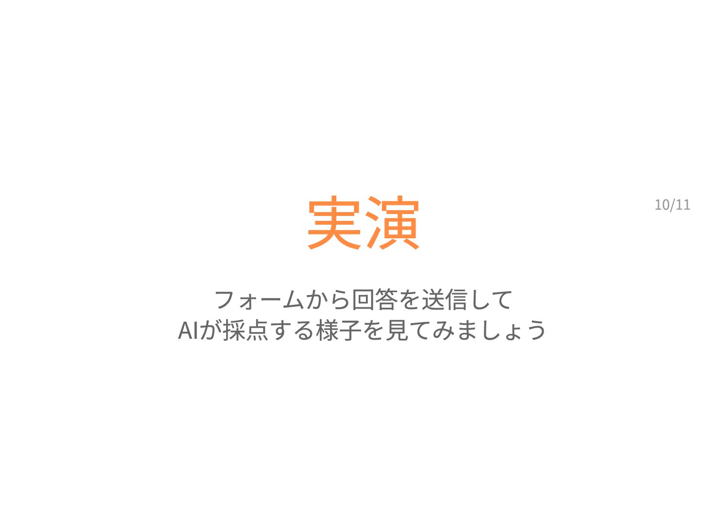 実演 フォームから回答を送信して AIが採点する様子を見てみましょう 10/11