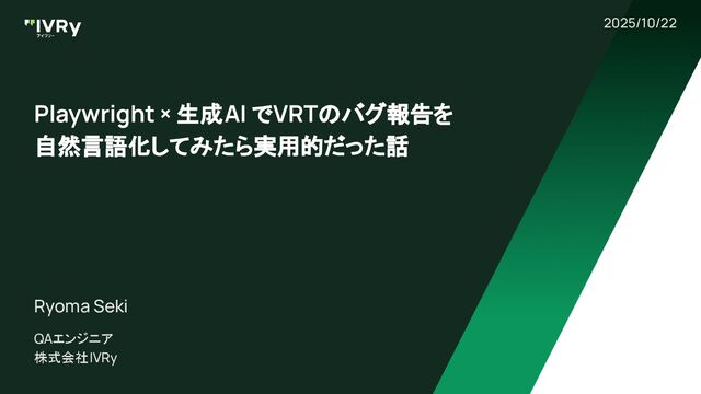 Playwright × 生成AI でVRTのバグ報告を 自然言語化してみたら実用的だった話 QAエンジニア 株式会社IVRy Ryoma Seki 2025/10/22