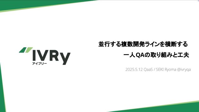 並行する複数開発ラインを横断する 一人QAの取り組みと工夫 2025.5.12 QaaS / SEKI Ryoma @ivryqa