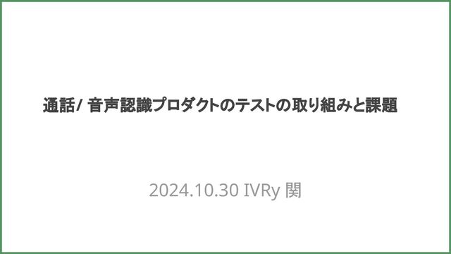 2024.10.30 IVRy 関 通話/ 音声認識プロダクトのテストの取り組みと課題