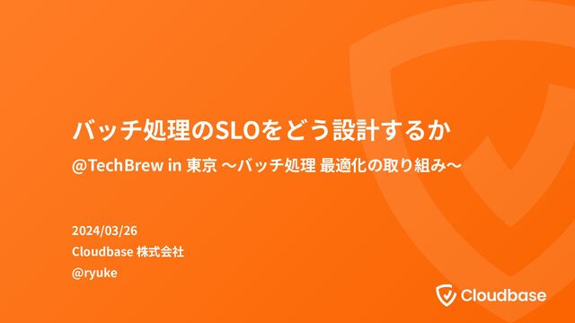 バッチ処理のSLOをどう設計するか @TechBrew in 東京 〜バッチ処理 最適化の取り組み〜 2024/03/26 Cloudbase 株式会社 @ryuke