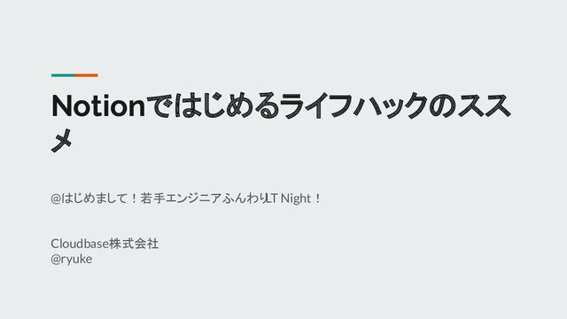 Notionではじめるライフハックのスス メ @はじめまして!若手エンジニアふんわり LT Night! Cloudbase株式会社 @ryuke