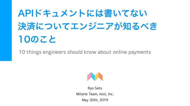 "1*υΩϡϝϯτʹॻ͍ͯͳ͍ ܾࡁʹ͍ͭͯΤϯδχΞ͕Δ͖ ͷ͜ͱ Ryo Sato Mitene Team, mixi, Inc. May
