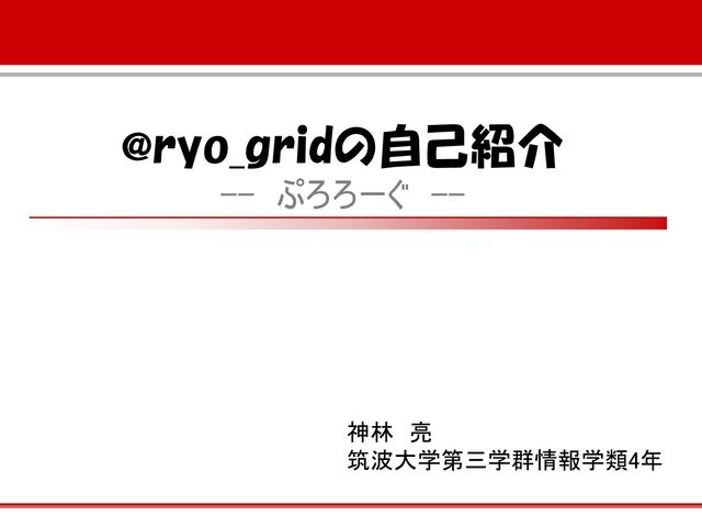 @ryo_gridの自己紹介 -- ぷろろーぐ -- 神林 亮 筑波大学第三学群情報学類4年