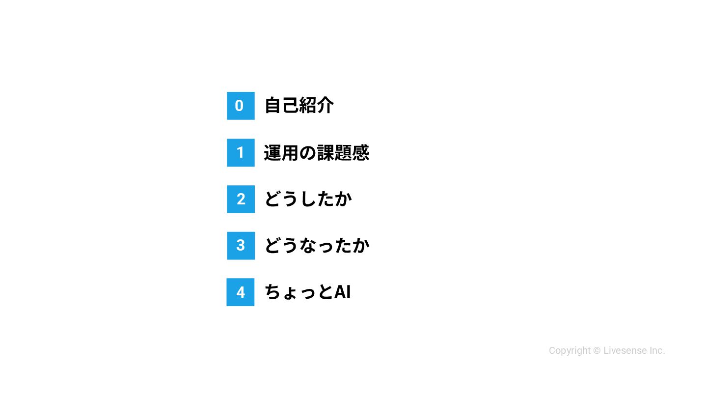 0 1 2 3 4 ⾃⼰紹介 運⽤の課題感 どうしたか どうなったか ちょっとAI