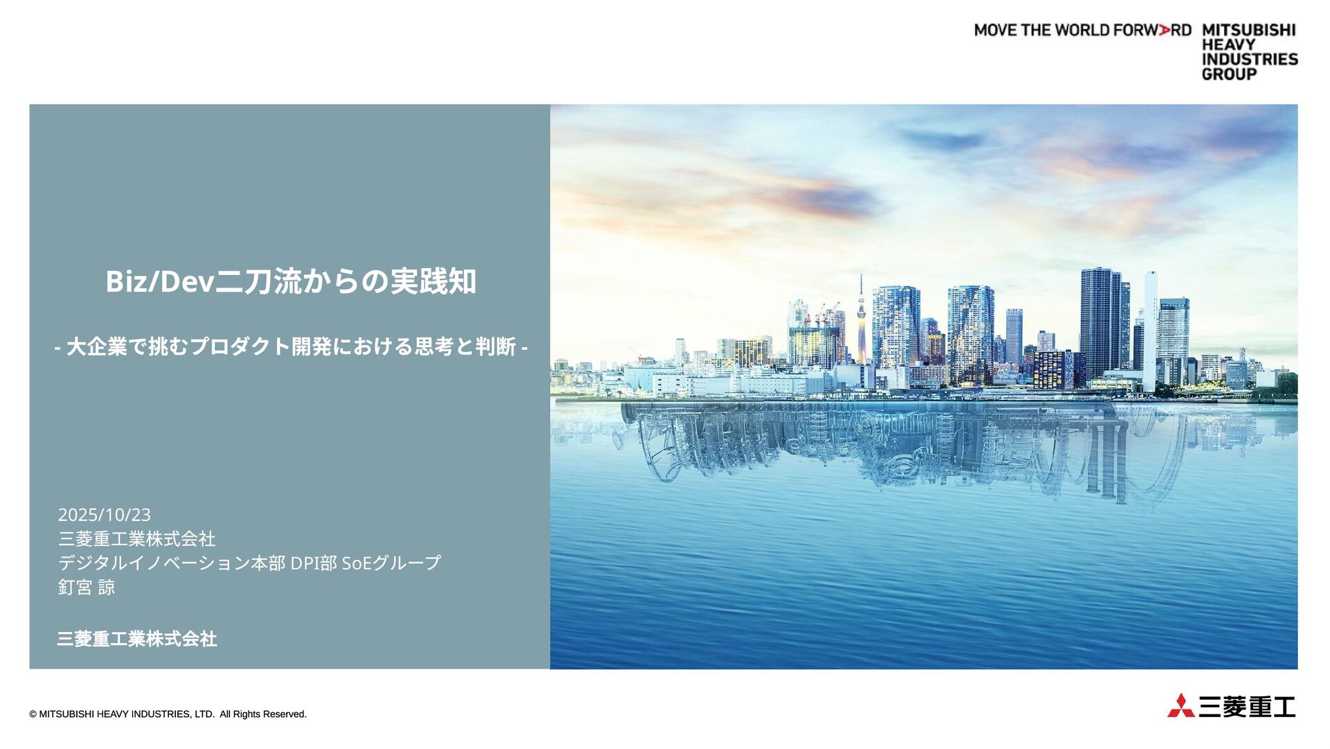 1. Biz/Dev 二刀流からの​ 実践知 2025/10/23 三菱重工業株式会社 デジタルイノベーション本部​ DPI 部​ SoE グループ