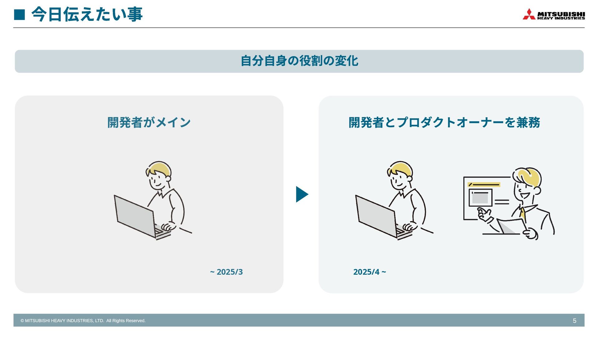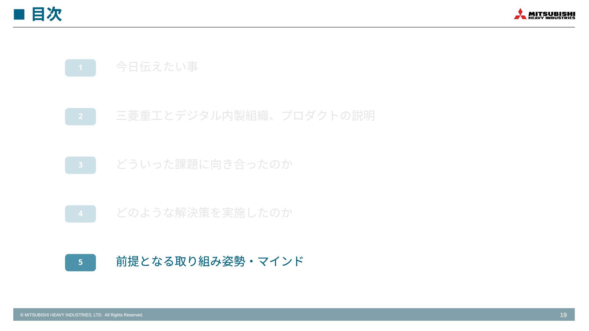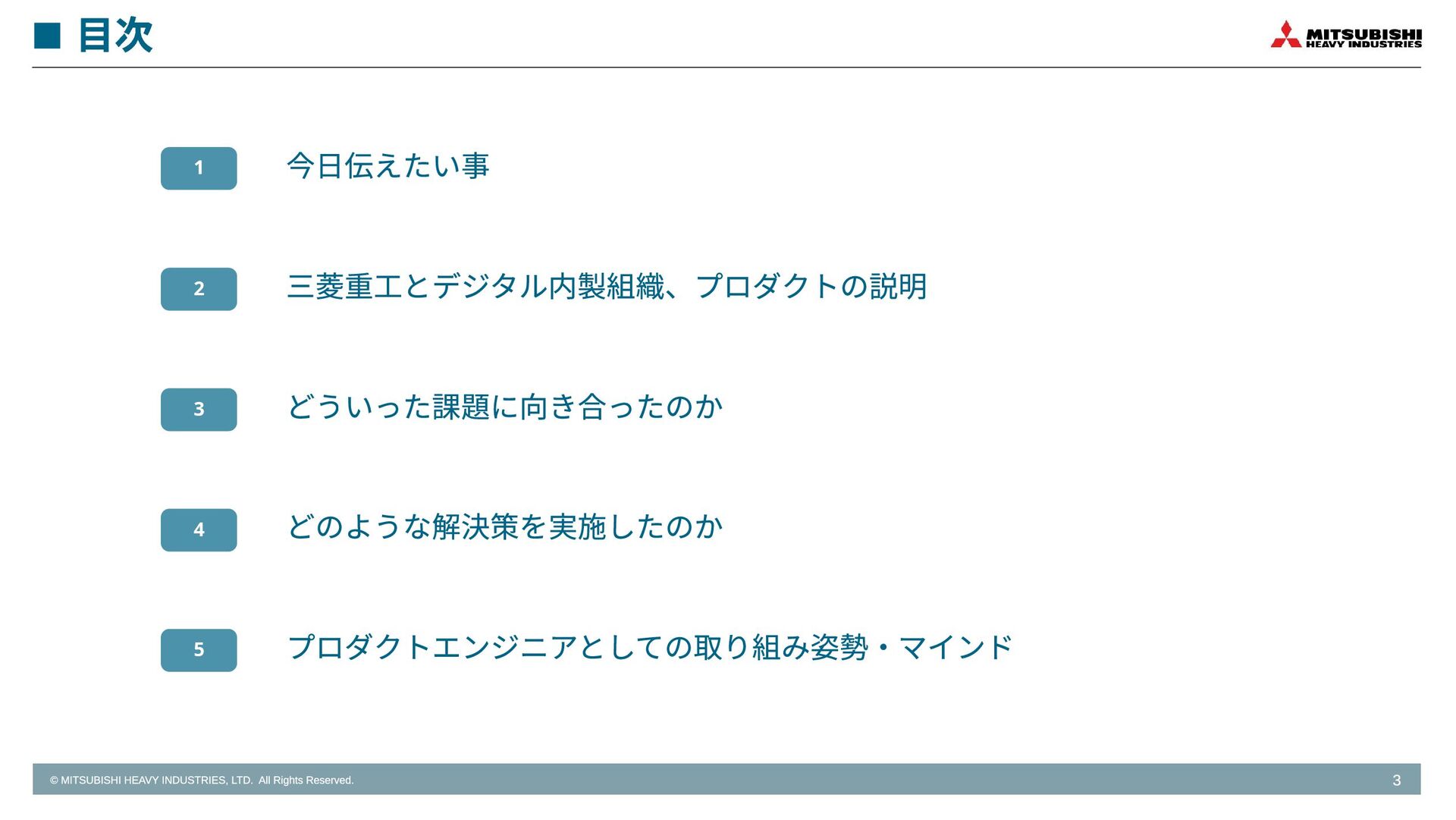 5. 1 2 3 4 今日​ 伝えたい​ 事 三菱重工と​ デジタル内製組織、​ プロダクトの​