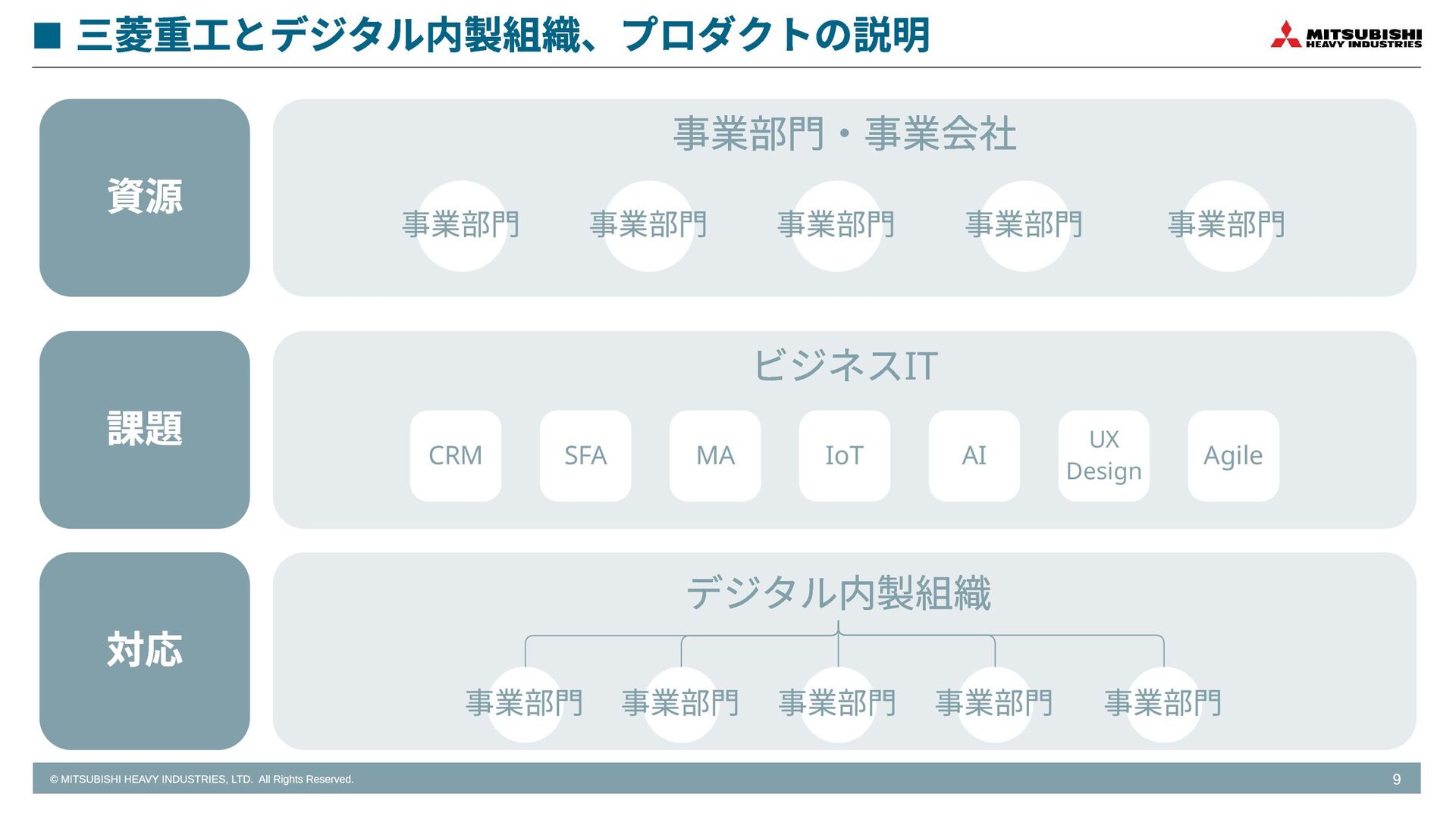6. 三菱重工とデジタル内製組織、プロダクトの説明 資源​ 課題 対応 事業部​ 門​ ・事業会​ 社 ビジネスIT ​