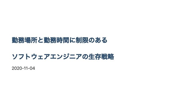 勤務場所と勤務時間に制限のある ソフトウェアエンジニアの⽣存戦略 2020-11-04